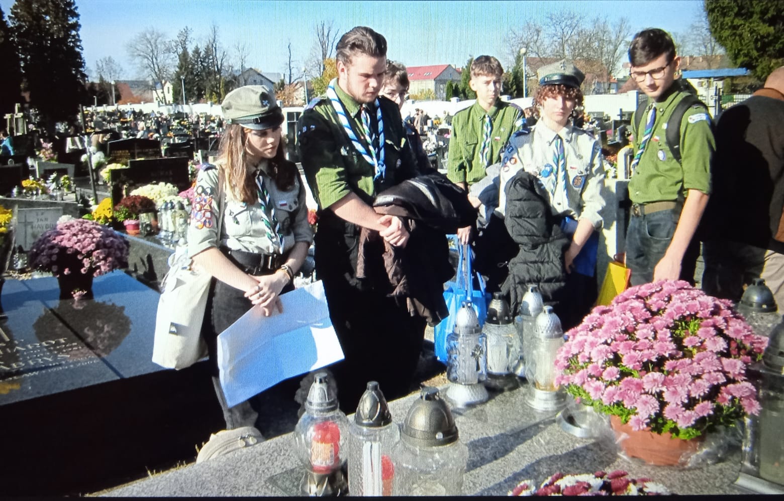 „Nauczycielskie zaduszki” to czas w którym szczególnie bierzemy sobie do serca słowa ks. Jana Twardowskiego „nie umiera ten, kto trwa w sercach i pamięci żywych „. W tym dniu odwiedzamy zmarłych koleżanek i kolegów na cmentarzach oświęcimskich w Przeciszowie, Chełmie Śląskim, Bieruniu i Wieprzu. Przywołujemy z zakamarków pamięci ich postaci, twarze, uśmiechy , słowa. Zapalamy znicze. W tym dniu dołączył do nas Hufiec Związku Harcerstwa Polskiego w Oświęcimiu, który przejął od nas pałeczkę i na mogiłach nauczycieli tajnego nauczania w okresie okupacji 1939-1945 zapalił światełka pamięci.